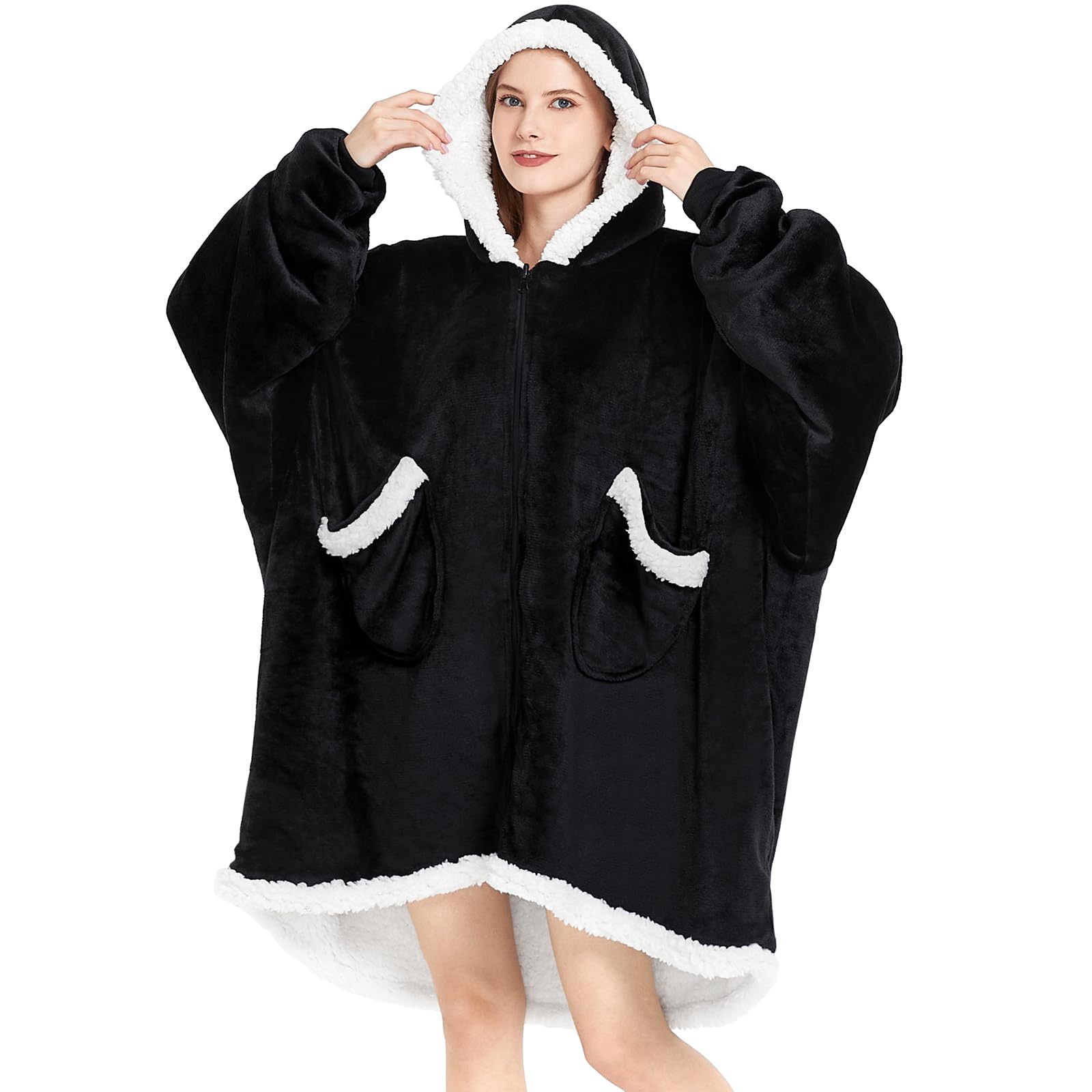 Eco Friendly Unisex Adult Black Sherpa Fleece Zipper Sweatshirt